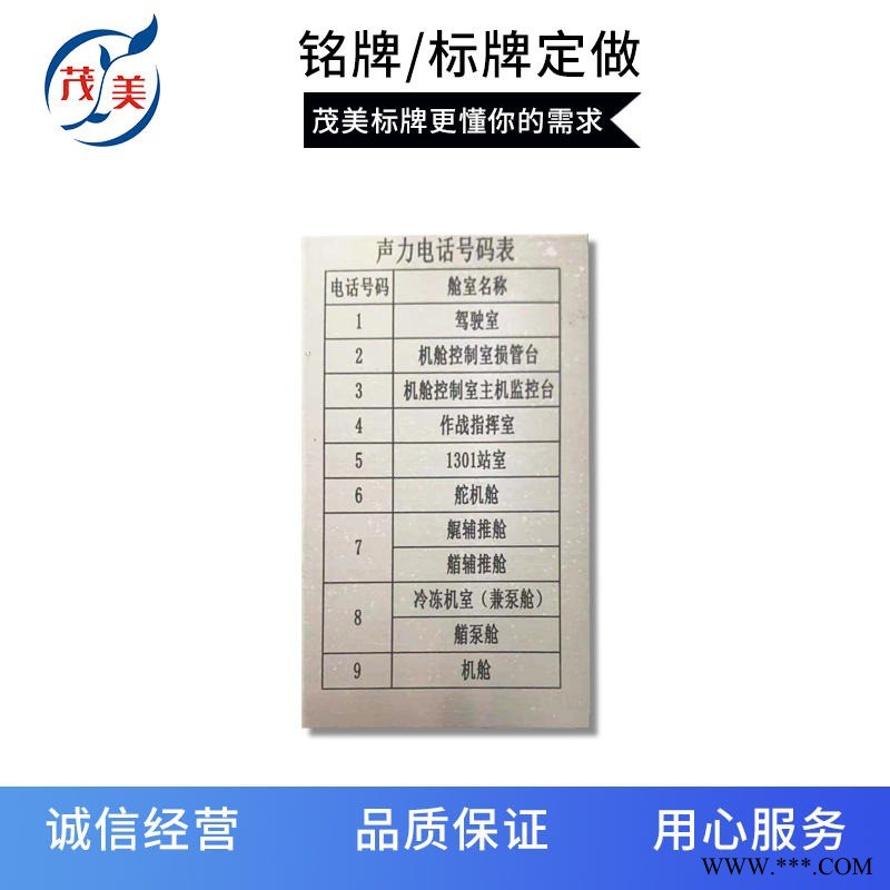 船舶金屬銘牌鋁牌定制 不銹鋼腐蝕標牌定做 鋁板UV絲印標識牌白云茂美廠家