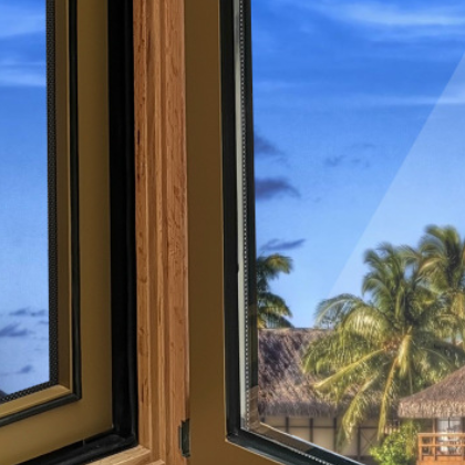 首頁 > > 華建100系列鋁包木門窗封陽臺北京鋁木復合門窗隔音隔熱節能平開