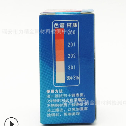 產品: 瀏覽次數:1319力精小包裝Q7真假好壞測試液鑒別測定識別201 304不銹鋼檢測藥水