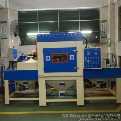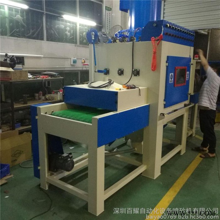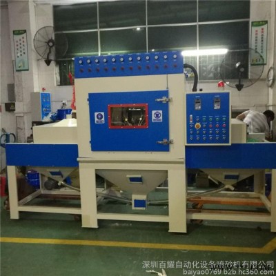 百耀牌自動噴砂機銷往全國各個地區,深圳五金配件噴砂機,福建木材噴砂機,河北瓷磚噴砂機,廣西除銹噴砂機,江西石材噴砂機等等,各個地區的表面處理都可以使用到.同時自動噴砂機被廣泛好評是由于它是一款全自動,高效率,節能環保,省人工,**的明星產品,可用范圍涉及到各個領域,因此在21世紀的**噴砂機占領了工業生產的主流行業,也是流水線生產的重要機器設備.