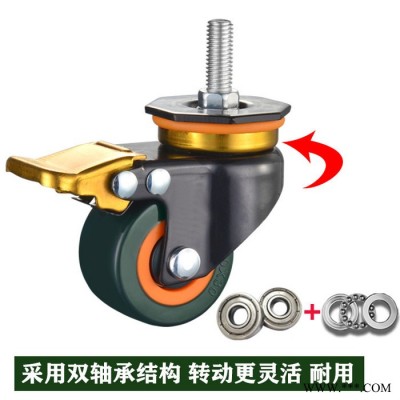 單輪載重 100KG 2.軸承為 軸承鋼雙軸承 靈活敏捷 3.支架表面處理 電泳 鍍鉻 掛黃鋅 更加防銹 時尚美觀