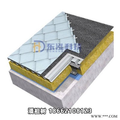 5、安裝平鎖扣鈦鋅板或平鎖扣鋁鎂錳板,0.5mm厚不銹鋼扣件,然后用咬合器咬合。