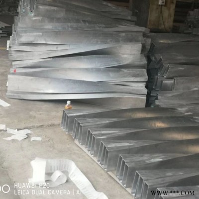 扭曲鋁板利用鋁制材料良好的延展可塑性,通過特制機器或模具制作而成。扭曲工藝為鋁板鈑金加工的一種特殊工藝,通常可對鋁單板或鋁管進行扭曲加工,扭曲加工通常選用材質較軟的O態鋁板或未經時效的鋁管為材料,扭曲加工的成型效果與材料的規格、厚度等有關。扭曲產品采用機械扭曲成型時通常兩頭因機械臂的夾持需預留一定的損耗,采用模具壓型工藝時還需要專門定制模具,所以還要考慮扭曲板的材料損耗及模具費用。扭曲加工時還需要根據不同的材料特性及材料的規格,考慮金屬材料扭曲成型后的應力作用,計算工藝精度。我廠可根據客戶要求生產多種扭曲角度的扭曲鋁板或鋁管。扭曲鋁板的要求鋁板的厚度至少在2.0mm以上,以保證扭曲加工時不會出現板面開裂、變形。常規采用2.0mm-10mm厚度的鋁板為原材料,鋁板寬度在50-800mm之間,長度6000mm以。采用鋁管扭曲時鋁管的口徑規格應盡量接近扁平。