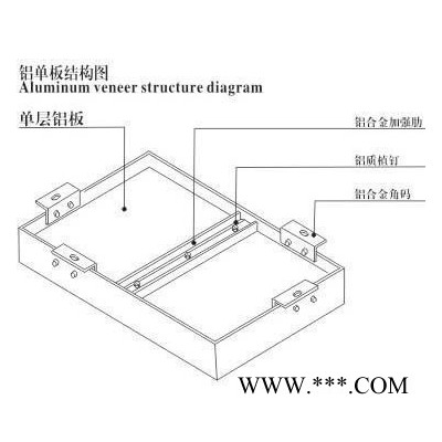 1、鋁單板主要選用1100系列或是3003系列鋁合金板材經(jīng)過折彎成型、焊接、背面加槽型加強肋,四周鉚接角碼組成。