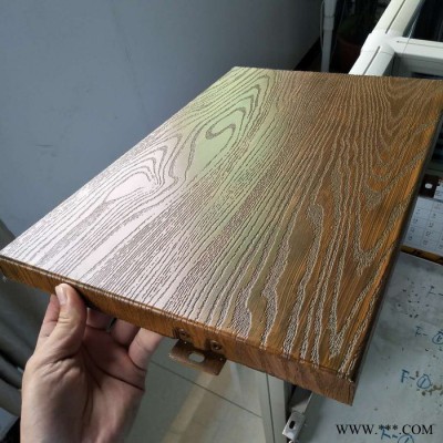 ,經(jīng)抽真空處理,將木紋膜移印到鋁單板的氟碳涂層上的一種金屬裝飾材料