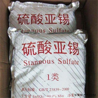 硫酸亞錫,分子式為SnSO4,分子量為214.75,是一種白色或淺黃色結(jié)晶粉末,能溶于水,水溶液迅速分解。主要用途是用于鍍錫或化學(xué)試劑,如合金、馬口鐵、汽缸活塞、鋼絲等酸性電鍍,電子器件的光亮鍍錫等。另外,還用于鋁合金制品涂層氧化著色,印染工業(yè)用作媒染劑,有機(jī)溶液中雙氧水去除劑等。