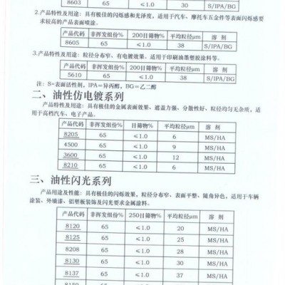 另公司有大型鋁銀漿廠,生產漂浮型銀漿、高漂浮銀漿、仿電鍍銀漿、閃光銀漿、細白銀漿等各種高低端銀漿。