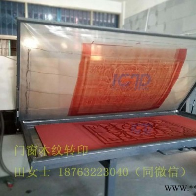 2,然后放入工作托盤,貼上木紋紙(轉印紙),蓋上硅膠板抽真空,讓木紋紙和工件貼合在一起,再進行電加熱,通過加 熱,可將轉印紙上的油墨熱升華,滲透到圖層中 即門板上**可完成轉印,木紋非常清晰逼真,無需再做其他理, 操 作簡單方便