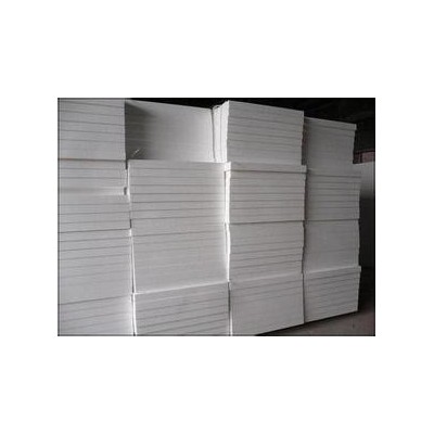 在硅酸鋁棉噴吹時加入一定比例的粘結劑,形成硅酸鋁氈坯通過固化室熱風穿透定型后,電腦控制臺自動切割成型的硅酸鋁干法板。