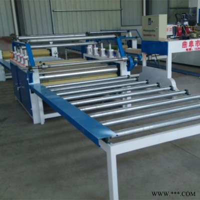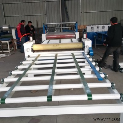 本貼紙機為連續貼面生產線,將所需不同顏色、花紋的貼面紙、PVC膠片、保護膜、帶不干膠保護紙等、成卷軟材料貼合在平面板材上,該機由轉動進料輸送架、掃塵器、單面涂膠機,中間輸送架、單面貼面機及烤膠片系統出料輸送架、三次冷壓、自動切紙、二次熱壓整平組成,是各種平面板材裝飾貼面的理想設備。
