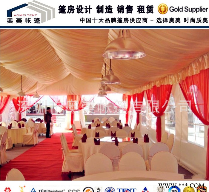 產(chǎn)品信息名稱: 篷房 品牌: 奧美 貨號: AM-SZ01 顏色: 白 紅 藍(lán) 黃 (26種)產(chǎn)品指數(shù)防火指數(shù):** 強 常規(guī)防風(fēng)指數(shù):≥12級 8~10級 8級≤防水指數(shù):無防水 微防水超防水 產(chǎn)品特點篷房采用高強度輕質(zhì)鋁合金材料作為結(jié)構(gòu)支架,篷布采用進(jìn)口雙面PVC涂層的合成纖維篷布,有防水、防火、防紫外等良好性能,具有穩(wěn)固安全、美觀大方、裝拆快捷、儲運方便等優(yōu)點,被廣泛用于戶外展覽、產(chǎn)品推廣、商業(yè)促銷、開業(yè)慶典、戶外婚慶、政府宣傳咨詢、接待活動、體育賽事、工業(yè)倉儲,各種藝術(shù)節(jié)、啤酒節(jié)、美食節(jié)等.加上完善的配套設(shè)施,如篷內(nèi)天花裝飾布幔、彩鋼硬體墻、活動玻璃門、家具、空調(diào)、地板、地毯和舞臺燈光音響等設(shè)施,為你的活動提供全套一站式服務(wù).