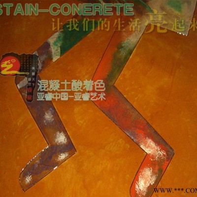 亞睿人引進(jìn)、研發(fā)應(yīng)用藝術(shù)混凝土滲透著色工藝—“睿龍WDO”藝術(shù)滲透著色系統(tǒng)。藝術(shù)滲透著色是由濕潤(rùn)劑、金屬離子和其他成分組成的滲透性液體。著色劑 與混凝土中的礦物質(zhì)顆粒產(chǎn)生化學(xué)反應(yīng),使表面形成各種持久色彩。 混凝土使用著色劑后,產(chǎn)生的色彩過(guò)渡自然,既能表現(xiàn)現(xiàn)代的新潮抽象,又能體現(xiàn)古典的雅致風(fēng)情;既有金碧輝煌、精彩紛呈的視覺(jué)效果,又具有自然真石的仿真藝術(shù),能給予設(shè) 計(jì)師極廣的創(chuàng)作空間和豐富的設(shè)計(jì)內(nèi)涵。