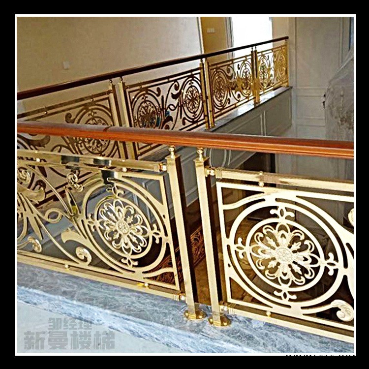 鷹潭 亮面鍍K金鋁藝樓梯護(hù)欄 室內(nèi)鋁板雕花扶手 在新曼定制更實(shí)惠