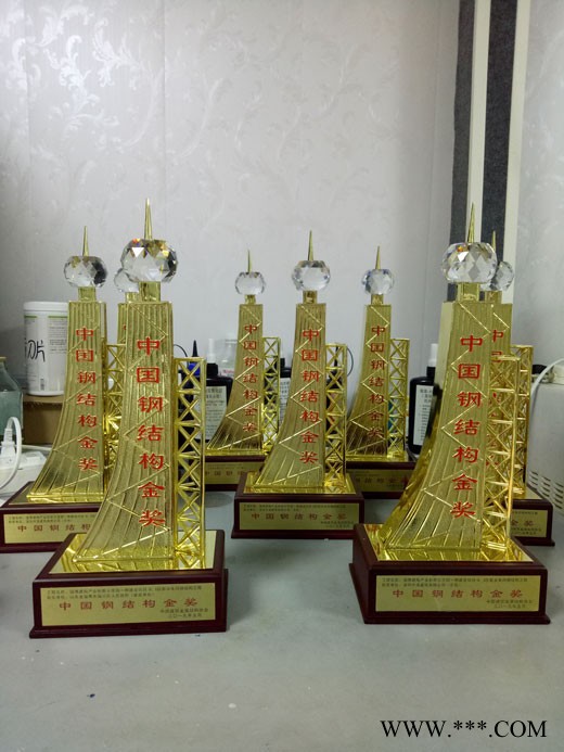 合金鋼結構獎杯馬到成功獎杯鋼結構金獎金屬獎杯魯班獎表面電鍍拋光工藝廣州騰洪專業生產金屬獎杯,金屬獎牌。產品采用**的鋅合金屬原料經過溶鑄,打磨拋光、度鉻等先進工藝精制而成。產品款式多樣,工藝精湛,物美價廉,享譽業界。是各類運動賽事獎品,球類賽事獎品,建設紀念獎品,全國**杰出人物獎品,先進個人獎等各種比賽獎品,各種評比,有常規款式產品,來樣加工、訂做,可在線免費設計。本公司產品貨真價實,量大價優,供貨速度快,更有多款新產品任你選購。鋼結構金獎金屬獎杯魯班獎詹天佑獎杯工廠定制 通常用于一些比賽活動中,是對比賽者的突出表現的獎勵。比如世界杯足球賽中頒發給冠亞季軍的大力神杯以及電影界里的小金人等,金屬獎杯。常用銅,鋅鋁合金開模鑄造或鍛造成型,表面電鍍拋光。整體穩重大方。而用黃金打造的獎杯,更是奢華貴重。比如為了紀念舒猴赫職業生涯中的向后一站,把紅色的絕唱定格為永恒,巴西站特意為車王打造了一座特別獎杯,用以表彰舒猴赫輝煌的職業生涯。這座獎杯高40厘米,系用黃金鑄造,上面鑲嵌有珍貴的巴西寶石,底座上書寫著:“歷史上偉大的車手之一”,而更寶貴的是它的頒獎嘉賓,球王貝利將為車王親自授 注:可根據客戶的要求在產品上噴沙或激光雕刻或改變企業的名稱和品牌以及其他的文字和圖像,同時也可根據客戶對價格的接受承度,通過改變相應配套包裝或產品的品質和檔次,上浮或下調產品的價格。歡迎新老客戶現場看樣訂貨或來電咨詢