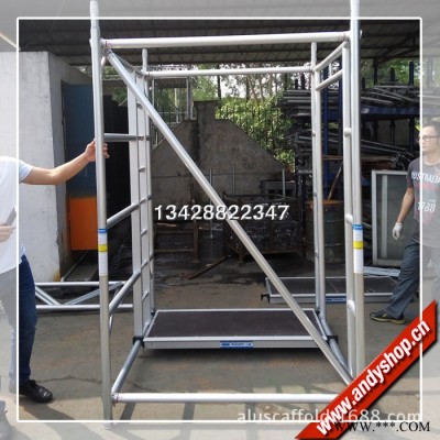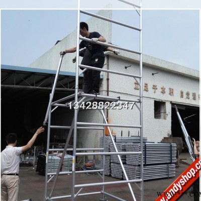 快裝式鋁合金腳手架,簡易搭建腳手架,可移動腳手架工作平臺,安全穩固,沒有零散部件。廣泛應用于酒店、禮堂、物業管理、戶外廣告裝飾裝修等高空工作場所。