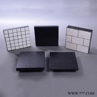 將硬度僅次于金剛石的92%或95%含量氧化鋁陶瓷片硫化到橡膠或聚氨酯中。氧化鋁陶瓷增強設備的耐磨性,橡膠起到緩沖物料的作用。在苛刻的磨損條件下這種陶瓷橡膠復合板內襯能延長設備的使用壽命,氧化鋁陶瓷阻力小使物料流動順暢,減少物料運行時間。