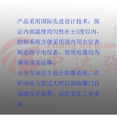安全標準,同時也避免了不必要工業災難,防爆門開啟自動停止加熱,有效控制因氣壓過高而保護電爐不被損壞。6、溫度類別有: 400℃、500℃、600℃、700℃