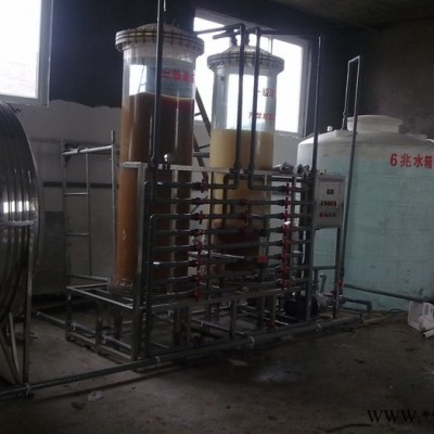 作用:除去水中硬度(Ca2+、Mg2+)的過程稱為軟化。本設(shè)備裝填001×7強(qiáng)酸型Na離子交換樹脂,用鈉離子置換原水中的鈣、鎂離子,使原水中的殘余硬度低于0.03mmol/L。軟化的目的是防止反滲透膜表面結(jié)垢,以延長反滲透膜的使用壽命和處理效率。