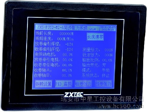 該產品是我公司為適應工控行業中的高端自動化控制而開發出來的人機界面(觸摸屏),它不僅具備了市場上普通人機界面的功能,而且還具備了工控PLC的多路標準輸入、輸出端口,并且還有多路的和模擬量輸入、模擬量輸出的接口,這樣可以很方便的移植到復雜的自動化控制系統中參與工作。該人機界面內部核心CPU采用高性能的32位ARM,這樣可以使其運行速度快、性能高等優點,現在該產品已經成熟的被應用到凹版印刷機同步張力控制、復合機的同步張力控制、高速分切機控制系統等機械設備。