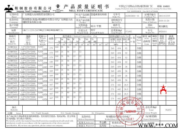 | 產地/廠家 | 鞍鋼 |