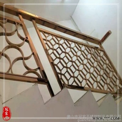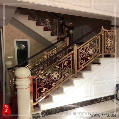 冠宸24K金樓梯扶手護欄 電泳K金樓梯扶手護欄 電泳玫瑰金樓梯扶手護欄生產廠家 提供上門測量安裝服務