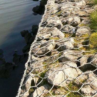 石籠網箱在施工現場經石頭填充,構成具有柔性、透水性及整體性的結構, 如擋墻、河道襯砌、堰等支擋的防沖蝕工程。 石籠網箱由間隔1米的隔板(雙絞合六邊形金屬網片)分成若干單元格,為了加強石籠網箱結構的強度, 所有的面網板邊端均采用直徑更粗的鋼絲??刂坪鸵龑Ш恿骷昂樗购閴巍Я鲏螏r崩防護、防止水土流失、大橋保護、固土結構、海濱防御工程、港口工程和擋土墻道路防護.