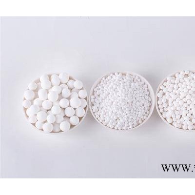 活性氧化鋁載體的工藝流程:工業氫氧化鋁烘干后粉碎至325目以下,作為快脫原料,經快速脫水得到主相為ρ-氧化鋁的快脫粉;合格的快脫粉在成型機中加入添加劑噴淋成型,并在一定的溫度下養生;然后經篩分、熟化等工序除去碎球和雜質**活化得到孔分布合理的活性氧化鋁產品。