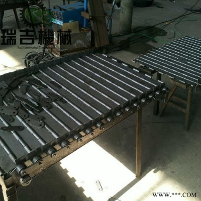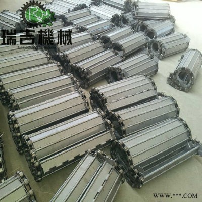 排屑鏈板輸送寬度400-1800mm,節距由63.5-250mm可選,輸送鏈板沖壓成型,表面鍍鋅處理,輸送鏈條輥子采用特殊設計,保證鏈板在導軌上運行平穩不蛇形,此類鏈板具有輸送量大,抗沖擊性強,承載能力大的特點,通常與地坑料槽等一起構筑成鋼板帶輸送地坑作為廢料輸送的專用輸送設備。是圾焚燒行業、廢紙造漿、或開(拆)包機的上料輸送專用設備,更具輸送物料的不同來確定輸送角度。