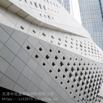 建筑內外墻漸孔裝飾鋁單板 白色大小孔排列沖孔鋁板與常規鋁單板相比,沖孔鋁單板大的特征就是表面形狀各異的沖孔(包括圓孔、方孔、五角星、六邊形孔等),裝飾效果突出,也能夠在一定程度上起到降低噪音的作用。沖孔鋁單板在工程裝飾中使用很多、鋁單板美觀、沖孔鋁單板背面可透光、當夜晚來臨時、光透光孔照射出的燈光很美、門頭沖孔鋁單板。