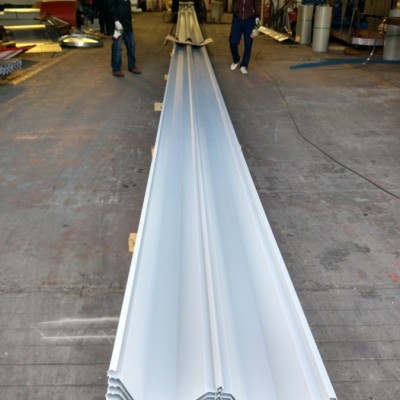 首先做一V字型材料,可選用不同的材料和規格,視實際情況而定.做接水處安裝在底部后在上面鋪放彩鋼瓦。