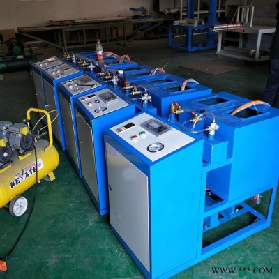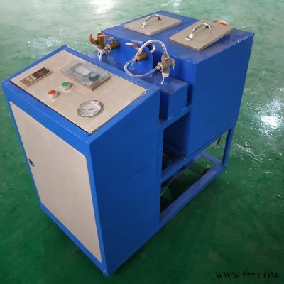 產品特點: 1、澆注機的澆注量可以在0至澆注量之間調節,調節為1%。2、本產品具有溫度控制系統,達到指定溫度時可自動停止加熱,其控制可達1%。3、本機具有溶劑清洗和空氣吹掃系統。4、本機具有自動加料裝置,可隨時任意加料。A、B料桶均可裝120公斤料液。料桶設有水夾套,利用水溫來加熱或制冷料液,各桶有水視管和料視管。5、本機采用截門調節A、B料液比例,比例可達1%。6、客戶自備一臺空壓機,壓力調節到0.8-0.9Mpa即可使用本設備生產。7、時間控制系統,本機的控制時間可在0-99.9秒之間設定,可達1%。