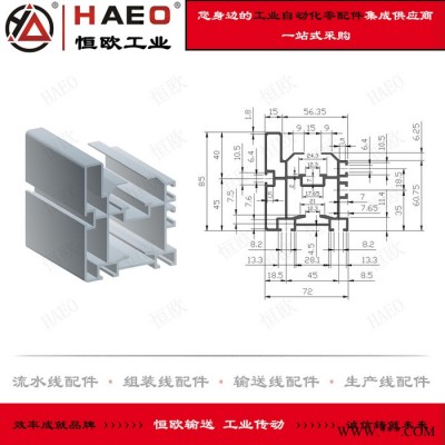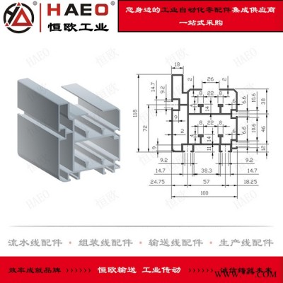蘇州恒歐工業自動化有限公司主要供應HAEO/恒歐 蘇州 鋁型材 本色陽極氧化 2013年夏 1-3天,質量保證,歡迎咨詢洽談。100*118 118*100 BS30-C212A 重載型三倍速鏈鋁型材生產廠家 BS25-C208A 2.5倍速鏈鏈條鋁材、頂升平移機鋁型材、85*44鋁型材、44*85平移機專用鋁型材、單鏈機滾筒線鋁型材、流水線型材系列有倍速鏈線鋁型材、皮帶線鋁型材、鏈條線鋁型材、滾筒線鋁型材、鏈板線鋁型材、帶導條三倍速鋁材廠家、工字型導條三倍速鋁型材、F型蓋板配套使用三倍速鋁型材、倍速鏈導軌(72*85)、流水線鋁型材導軌、差速鏈導軌、倍速鏈鋁導軌(55*85)、輸送線導軌、流水線鋁型材、工業鋁型材、2.5倍速鏈鋁材(35*70),節距19.05倍速鏈條專用鋁材、三倍速鋁材(81*95)、組裝線鋁材、總裝線鋁材、倍速鏈鋁材(62*66)、鐵質三倍速專用導軌、重載型鋁型材(118*100)、2.5倍速鏈鋁型材導軌(45*90)、單倍速鏈鋁型材導軌、差速鏈型材軌道、差速鏈型材導軌、重型帶蓋板差速鏈型材、工業流水線鋁型材、面板安裝導條工業鋁型材、鋁合工字型導條(100*118鋁型材配件)、3倍速鏈鋁型材(100*127)、L型帶蓋導軌、F護蓋板、3倍速鏈鋁型材(100*125),L型帶蓋導軌。還有歐標、國標型材、異形工業鋁型材、非標工業型材,產品具有實用、經濟、快速、靈活等優點;具有質量輕,成形性好,強度高,耐腐蝕,可回收利用等特點;品種多樣,切割準確,加工方便,表面不生銹等特點,可搭配多種材料及配件,組裝成輸送線設備及工業自動化設備。